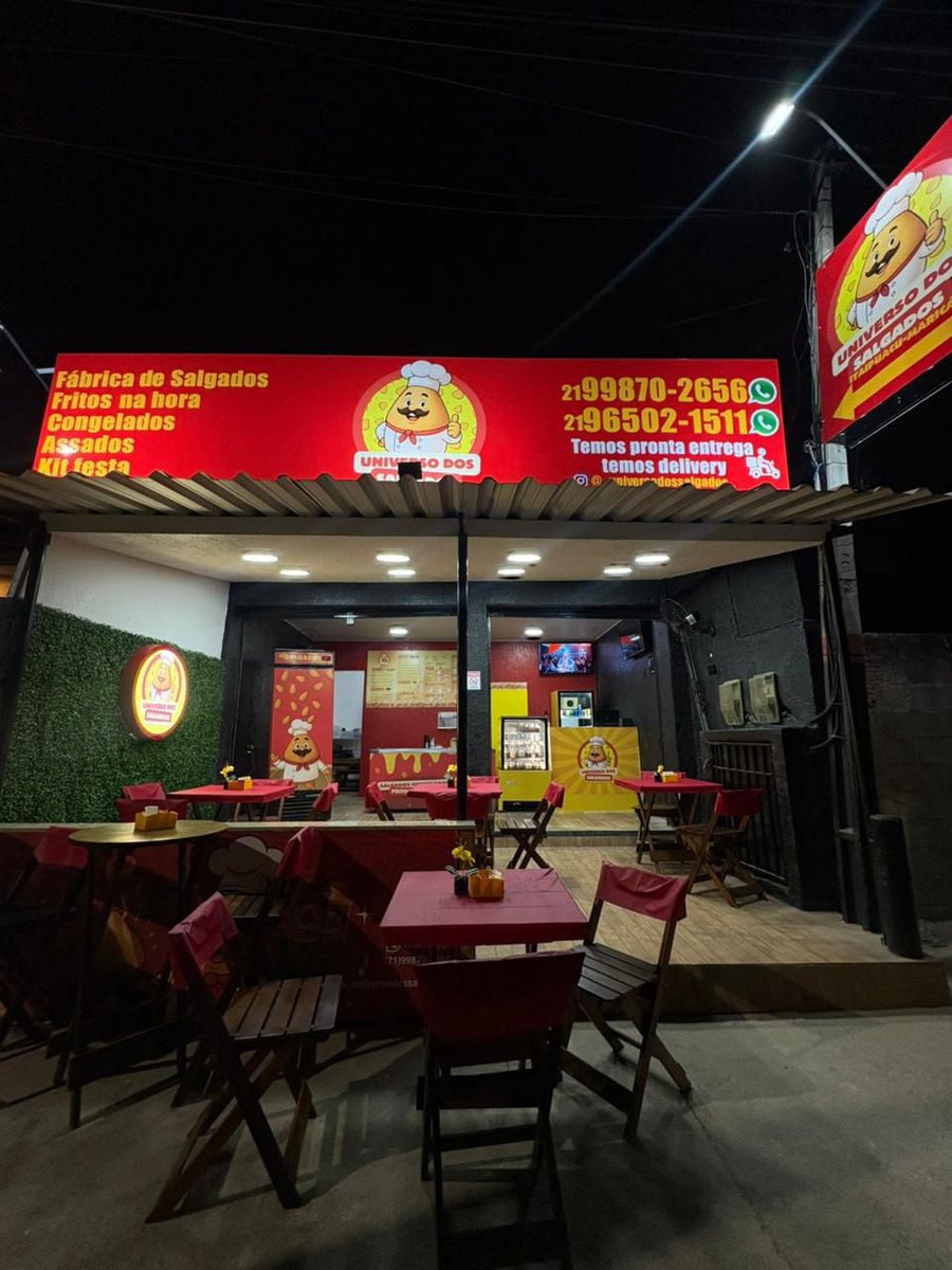 O Universo dos Salgados é referência quando o assunto é variedade e praticidade para festas, reuniões ou para ter sempre algo gostoso em casa. A casa oferece uma grande diversidade de salgadinhos tradicionais, preparados com qualidade e muito sabor. No cardápio você encontra kits festa completos, salgados fritos, assados, empanados e também opções congeladas, ideais para quem quer praticidade no dia a dia ou para organizar eventos com facilidade. Com produção caprichada e opções para diferentes ocasiões, o Universo dos Salgados é a escolha perfeita para quem busca sabor, variedade e preço acessível. Funcionamento todos os dias (exceto às terças), a partir das 17h. Forma de pagamento: Cartões, pix, VR, Ticket e Sodexo.